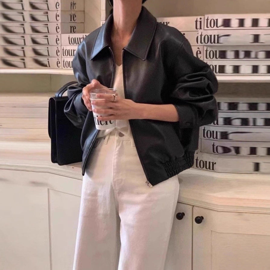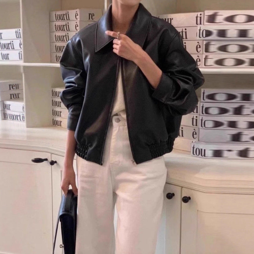 Découvre la veste Sorsha en cuir noir qui réinvente le style rock avec une touche de féminité. Avec sa coupe loose et courte, cette veste est ton alliée pour affirmer ton caractère tout en restant ultra confortable.